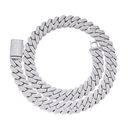 925 Silver Moissanite 19mm Cuban Chain 22 Inches