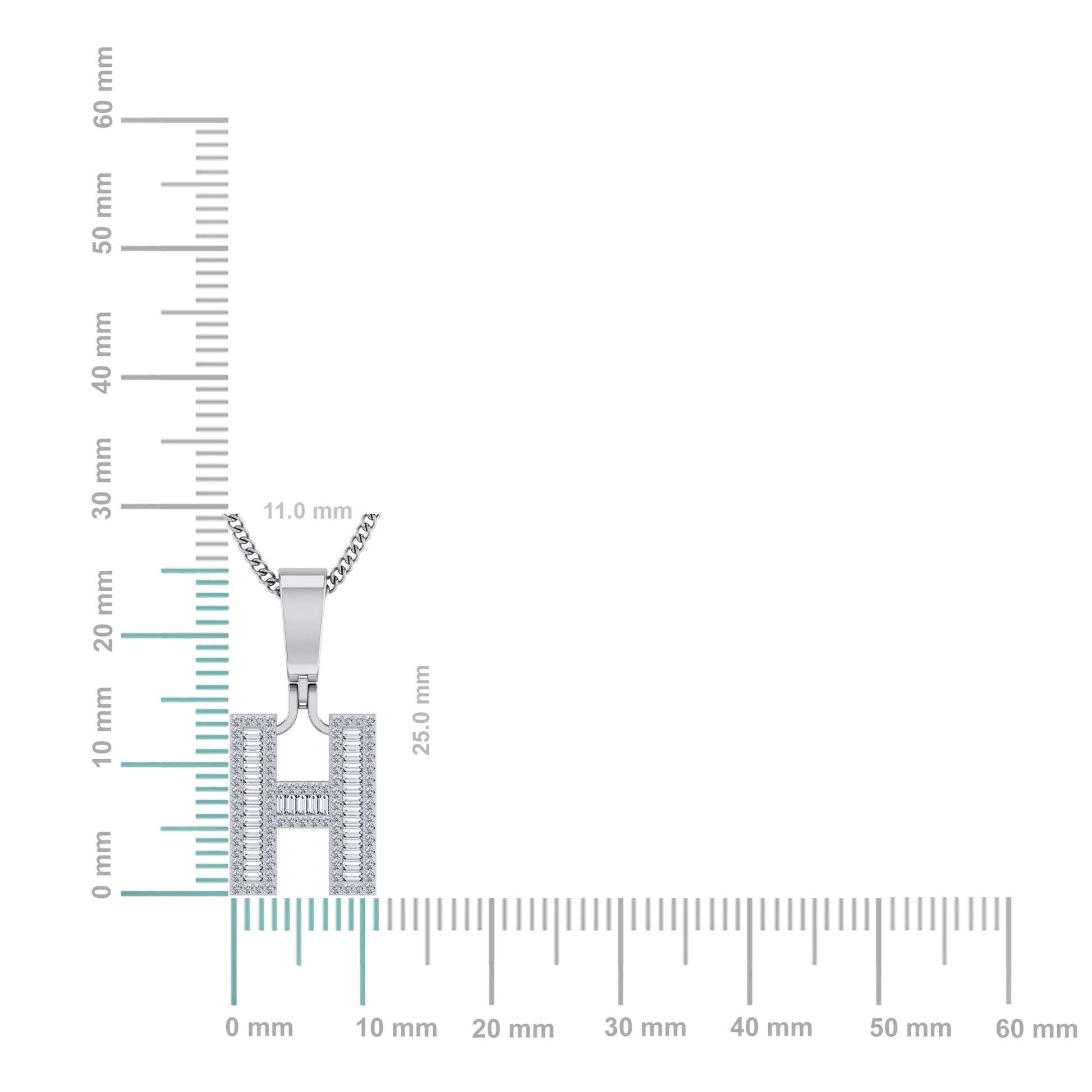10K White Gold Tw Baguette Initial H Pendant 3/8 Cttw
